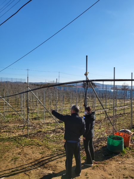 센터는 가지치기 시 전정가위나 톱 등으로 감염될 수 있으므로 과수원 출입 전 피복류와 작업도구 소독을 철저히 하는 것이 중요하며 작업도구는 70% 알코올이나 락스 20배 희석액에 10초 이상 철저히 소독할 것을 당부했다.