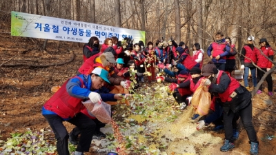 겨울철 한파로 인하여 야생동물들이 겨울철 먹이활동에 어려움을 겪을 것으로 우려되어, 야생동물 통행로에 먹이를 놓아 두어 굶주린 야생동물들이 쉽게 찾아 먹을 수 있도록 하는 등 최소한의 먹이를 제공해 야생동물의 탈진과 폐사를 예방하고자 한다.
