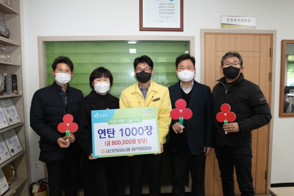 [충청뉴스큐] 금산인삼농협은 지난 13일 금산군청을 방문해 추운 겨울을 힘들게 보낼 관내 어려운 이웃을 위해 써달라며 80만원 상당의 연탄 1000장을 기탁했다.