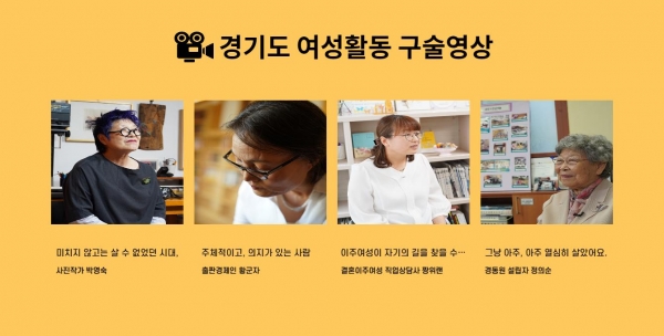 지난달 29일 문을 연 ‘경기도 여성구술 영상전시관’은 경기도 여성활동가 4인이 자신의 이야기를 영상으로 전하는 내용으로 2개 전시 모두 이제까지 드러나지 않았던 도내 각계각층 여성들의 특별한 삶을 발굴·기록했다는 의미가 있다.