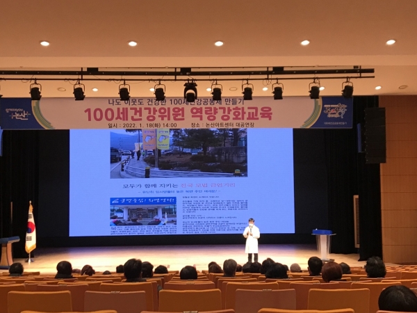 [충청뉴스큐] 논산시는 지난 18일 전국 최초로 13개 모든 읍·면에서 추진 중인 주민주도 ‘나도 이웃도 건강한 100세건강공동체 만들기’의 100세건강위원 102명을 대상으로 역량강화 교육을 실시했다.