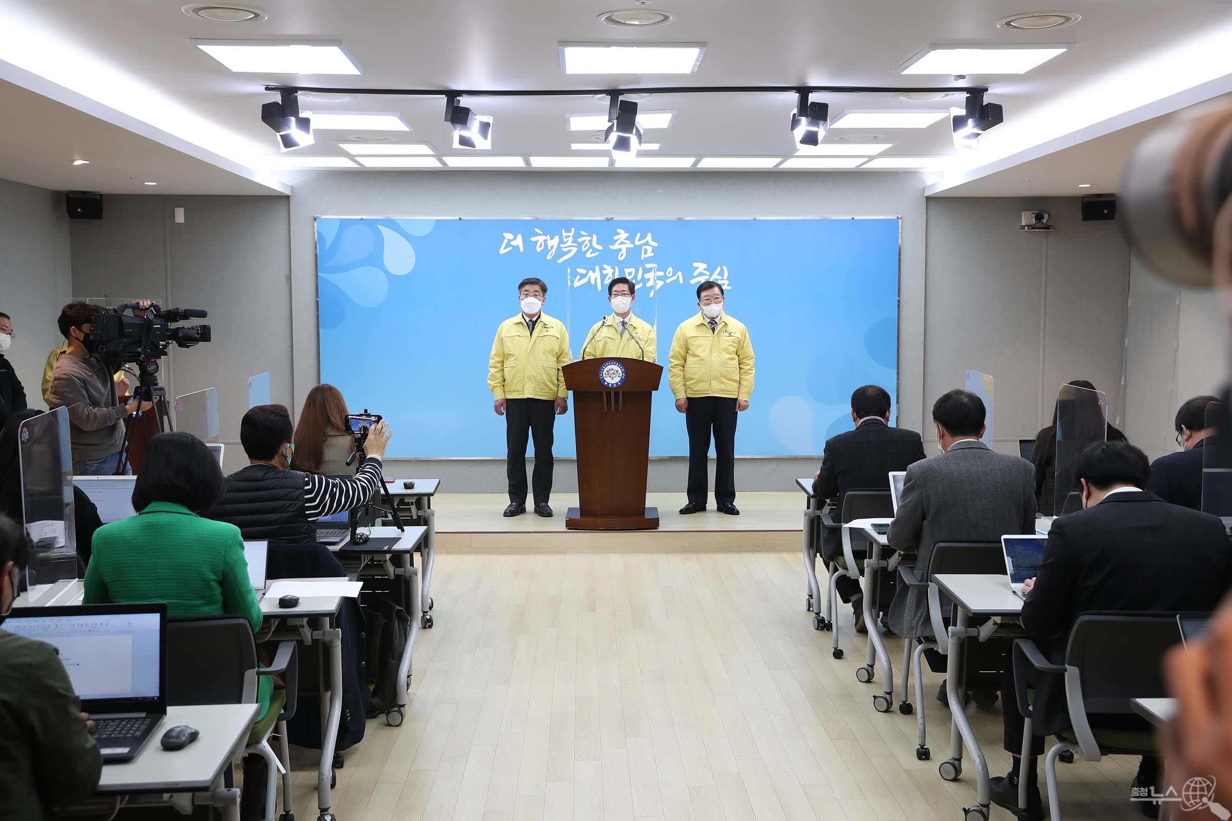 양승조 지사는 지난27일 도청 프레스센터에서 ‘오미크론 변이 확산에 따른 도민 담화문’을 발표했다.