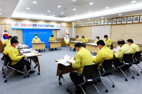 충남 서산시가 28일 시청 상황실에서 코로나19 오미크론 대응 특별방역대책회의를 열었다.