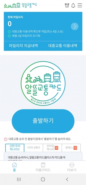 마일리지 적립을 위해서는 알뜰교통카드 홈페이지에서 알뜰교통카드를 발급받고 전용 앱 설치 후 회원가입을 해야 한다.