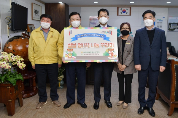지난 27일 농협중앙회 홍성군지부는 홍성군을 방문해 600만원 상당의 떡국 떡과 간편식 꾸러미를 기탁했다.