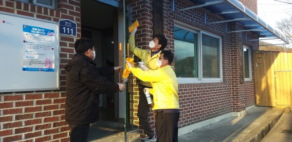 이들은 휴일인 지난 5일과 6일 관내 경로당을 방문해 경로당 폐쇄여부 점검 후 운영중단 안내문을 부착하고 경로당 외부에 대한 방역소독도 실시했다.