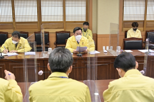 박정현 부여군수는 7일 군청 서동브리핑실에서 재난안전·일상회복 대책회의를 열고 “오미크론 변이 바이러스의 전파력이 강해 완전히 막기는 어려우나 의료체계가 대응 가능한 범위내에서 확산세를 진정시키는 것이 매우 중요하다”며 “근무하거나 대화할 때 상시 마스크를 착용하고 식사 시 대화 및 불필요한 만남과 타 지역 이동 자제 등 기본적인 방역수칙 준수를 요청드린다”고 당부했다.