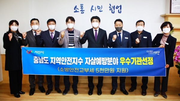 [충청뉴스큐] 충남 서산시가 행정안전부 주관 ‘2021년 지역안전지수 평가’에서 충남도 내 자살예방분야 개선 우수기관으로 선정돼 인센티브 5천만원을 받는다.