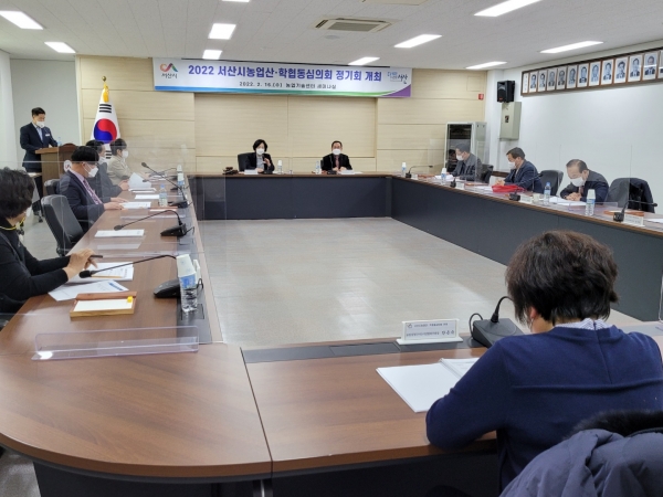 [충청뉴스큐] 서산시농업기술센터는 지난 2월 16일 오후 1시30분 농업기술센터 세미나실에서 심의위원및 관계공무원 23명이 참석한 가운데 서산시농업산·학협동심의회를 개최하고 2022년 농업기술보급 시범사업 대상자를 선정했다.