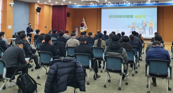 이날 교육은 ‘중대재해 처벌 등에 관한 법률’이 2022년 1월 27일부터 시행됨에 따라 관련 법령을 이해하고 안전보건 관리체계 구축 시스템을 갖추기 위해 마련됐다.