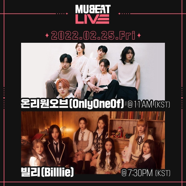 2월의 뮤빗돌로 선정된 온리원오브와 빌리가 오는 25일 금요일 오후 진행되는 뮤빗 라이브에 출연한다.