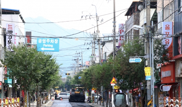 중앙로에 거미줄처럼 얽혀 있던 전주 및 전선 지중화를 통해 도시미관 개선과 쾌적한 가로변을 조성하고 안전한 통행로가 확보됐다.