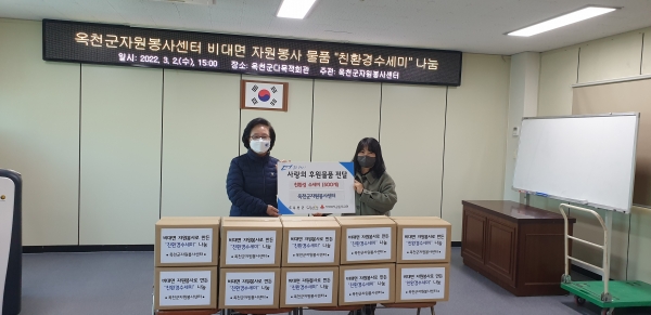 [충청뉴스큐] 옥천군자원봉사센터는 3일 비대면 자원봉사활동에 참여한 200여명의 청소년들이 만든 친환경수세미 500개를 옥천군드림스타트 가정에 전달해 달라며 기탁했다.