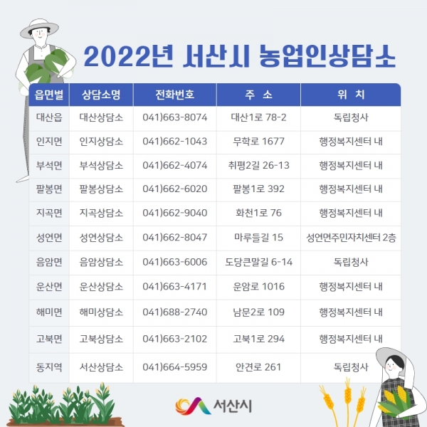 [충청뉴스큐] 충남 서산시가 영농현장 민원 신속한 해결과 농업인단체 활동지원을 위해 농업인상담소를 운영한다.