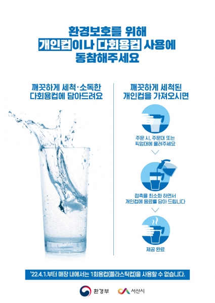 [충청뉴스큐] 충남 서산시가 4월 1일부터 한시적으로 허용됐던 식품접객업 내 1회용품 사용이 금지된다고 밝혔다.