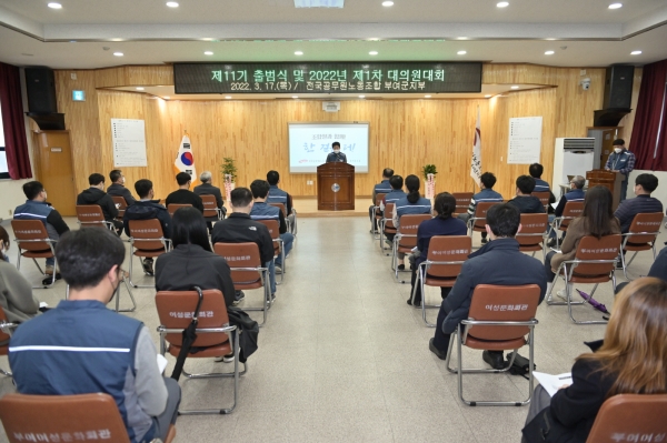 [충청뉴스큐] 공무원노동조합 부여군지부는 지부장 이취임식과 제11기 지부 출범식, 2022년 제1차 대의원대회를 개최했다.