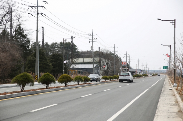 [충청뉴스큐] 서천군이 지난 1월 개통해 6월 중 준공을 목표로 추진하고 있는 ‘군도25호 확포장공사’의 조경공사와 교통안전시설 공사를 마무리하고 말끔하게 정돈된 모습으로 운영 중이라고 밝혔다.