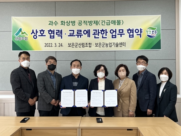 이번 업무협약으로 두 기관은 과수화상병 긴급매몰 공동방제 지원사업 보은군 과수산업 발전 등을 서로 협력한다.
