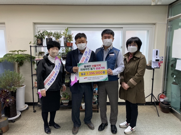 [충청뉴스큐] 전국공무원노동조합 보은군지부는 지난 25일 민간사회단체연합회 보은군지회를 방문해 동해안 산불피해주민 돕기 성금 1,396,000원을 기탁했다.