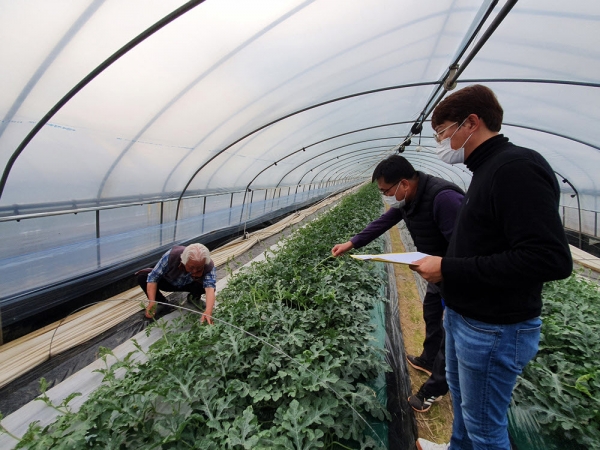 현장컨설팅은 코로나19 상황으로 집합교육이 어려워진 상황에서 올해 일기 불안정으로 수박 생장이 저조하고 병해가 증가함에 따라 마련됐다.