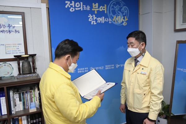 박정현 부여군수는 “앞으로도 민원행정을 개선해 나가고 다양한 민원시책을 발굴해 군민 중심의 수요자 맞춤형 민원서비스 구현을 위해 최선을 다하겠다”고 밝혔다.