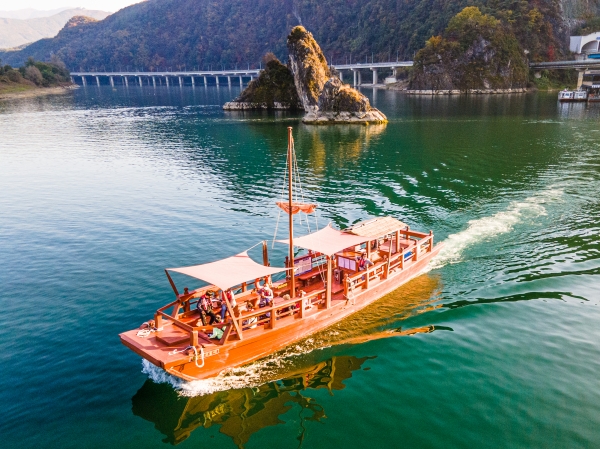 단양팔경 중 제1경으로 불리는 도담삼봉은 충북 최고의 인기 관광지로 이름을 떨치며 2019년 한해에만 465만명이 찾은 곳으로 남한강 한가운데 솟아 있는 세 개의 봉우리가 신비한 절경을 보여준다.