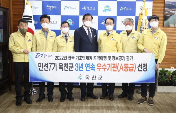 [충청뉴스큐] 옥천군이 한국매니페스토실천본부 주관 2022년 전국 기초단체장 공약이행 및 정보공개 평가에서 충북도 유일 3년 연속 우수등급을 받았다.