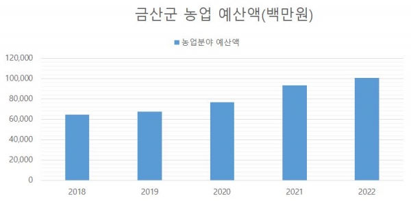[충청뉴스큐] 금산군은 올해 농업분야 예산이 1005억원으로 지난해 대비 7.78% 상승했다고 밝혔다.