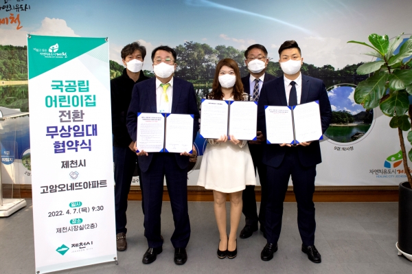 [충청뉴스큐] 제천시는 고암오네뜨아파트입주자대표회의와 단지 내 어린이집을 국공립어린이집으로 전환하기 위해 건물사용에 대한 무상임대 협약을 지난 7일 체결했다.