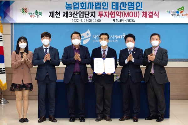 [충청뉴스큐] 제천시는 12일 제천시청에서 태산명인과 제3산업단지 공장 신설을 위한 투자협약을 체결했다.