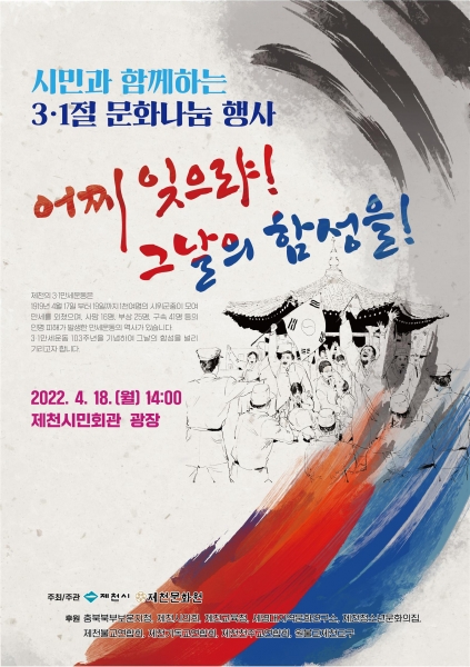 [충청뉴스큐] 제천문화원은에서는 오는 4월 18일 오후 2시, 제천시민회관 광장에서 3.1절 문화나눔행사를 개최한다.