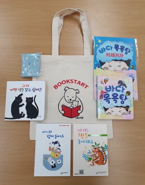 이번 북스타트 책꾸러미는 북스타트코리아에서 선정한 그림책 2권, 북스타트 가이드북, 스카프, 가방으로 구성돼 있으며 70명에게 선착순으로 배부한다.