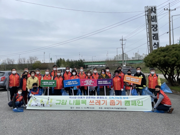 [충청뉴스큐] 부여군은 지난 14일 국도4호선 부여대교 밑 규암나들목 주변에서 부여군지속가능발전협의회 주관으로 환경정화 캠페인을 실시했다고 밝혔다.
