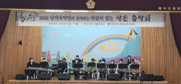 [충청뉴스큐] 충북 영동군이 관내 국악관현악단이 없는 초·중·고를 대상으로 찾아가는 작은 음악회를 실시하며 국악의 흥을 전한다.
