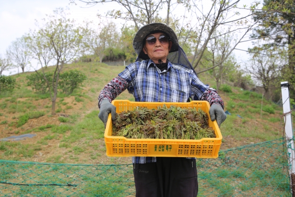 동이면 조령리에서 17년째 옻 재배를 하는 이석수 씨는 지난 20일부터 하루 평균 20~30kg의 참 옻순을 채취하고 있다.
