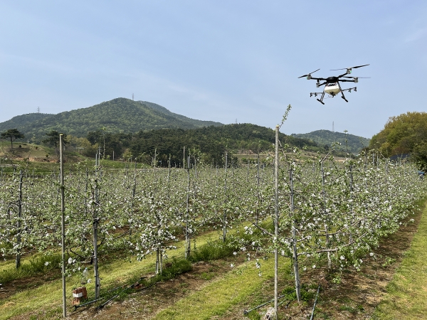 드론 인공수분을 통해 노동력 절감은 물론 과수화상병 전염 방지에도 기여할 것으로 전망했다.