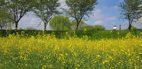 [충청뉴스큐] 조선시대 3대 방죽의 하나이자 세계관개시설물 문화유산으로 등재된 합덕제가 유채꽃의 노란 물결로 출렁이며 상춘객들의 마음을 사로잡고 있다.