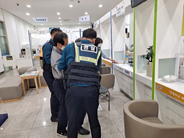 이번 모의훈련은 불특정 다수에 의한 폭언, 폭력 등으로부터 민원담당 직원들을 보호하고 방문 민원인에 대한 2차 피해에 신속하게 대처할 수 있는 현장 대응 능력을 향상시키고자 마련됐다.