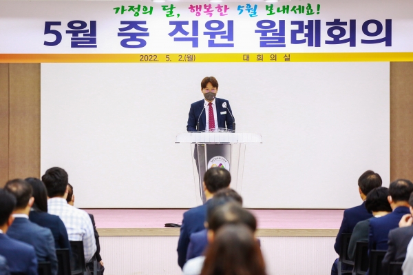 끝으로 구 권한대행은 “6월 1일까지 권한대행체제로 전환됐는데 행정의 연속성이 유지될 수 있도록 노력해달라”며 “가정과 직장 화합을 이루는 힘찬 5월이 되길 바란다”고 끝맺었다.
