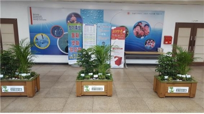 [충청뉴스큐] 대구시설공단은 미세먼지 감축대책의 일환으로 지난 17일부터 22일까지 공단에서 운영 중인 올림픽기념국민생활관 외 13개 사업장에 공기정화식물화분 27개를 비치했다.