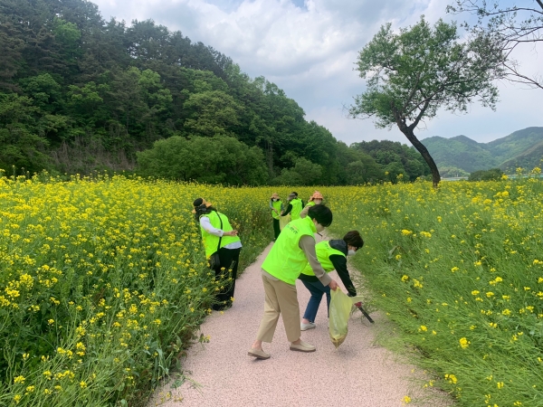 [충청뉴스큐] 옥천군여성단체협의회는 상춘객 방문이 많아진 동이면 유채꽃단지에서 쓰레기를 줍고 건강도 챙기는 플로깅 활동을 통해 환경정화와 함께 지역사랑을 실천하고 있다.