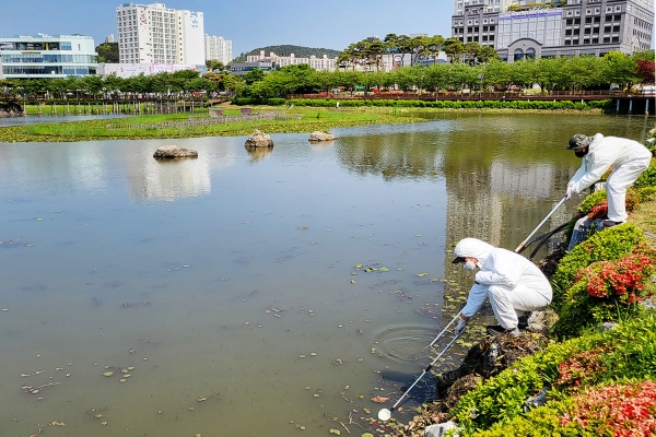 시는 지난 4월부터 방역기동반을 편성해 정화조, 하수구, 공중화장실, 관광지 등에 집중 유충 구제 작업 중이다.