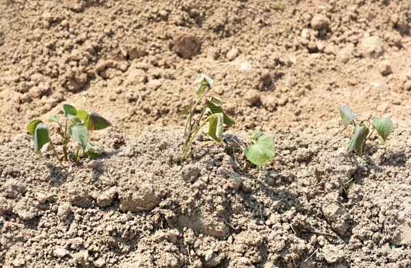 가뭄이 지속될 경우 고추 정식 초기 착근 불량, 마늘·양파 구비대기 수분 부족에 따른 생산량 감소, 덩굴강낭콩 착협 및 종실비대 불량 등 밭작물의 피해가 크게 발생한다.