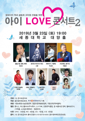 [충청뉴스큐] 캄보디아 학교와 고아원 건립을 위한 사랑의 자선공연 아이 러브 콘서트2가 오는 3월 23일 오후 7시 세종대 대양홀에서 열린다.지난해 9월 29일 첫 공연에 이은 시즌2 무대다.