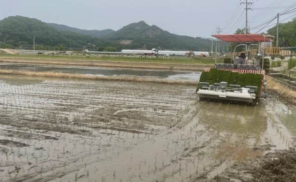 [충청뉴스큐] 본격적인 영농철을 맞아 영동군에서도 모내기 작업이 한창인 가운데, 소식재배 방식으로 모내기가 첫 시행돼 눈길을 끌고 있다.