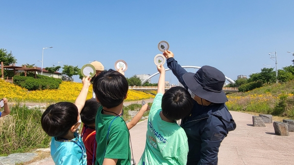 특히 마운트 속 식물 찾기, 화산천 물고기 체험, 풀피리 목걸이 만들기 등 어린이들이 여러 감각으로 직접 느끼고 체험할 수 있는 현장 체험학습을 병행해 아이들의 큰 호응을 얻었다.