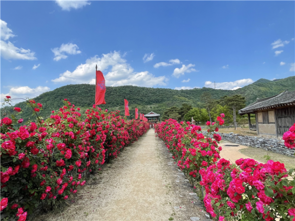 [충청뉴스큐] 계절의 여왕 5월을 맞아 충북 단양군의 온달관광지에 만개한 빨간 장미가 관광객을 맞이해 눈길을 끌고 있다.