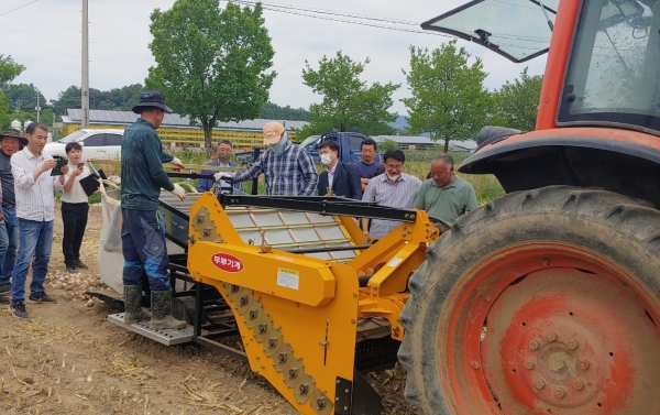 이날 현장에는 지역의 마늘작목반, 농업기술센터 관계자 등 30여명이 참석해 마늘 수집형 수확기 도입에 많은 관심을 보였다.