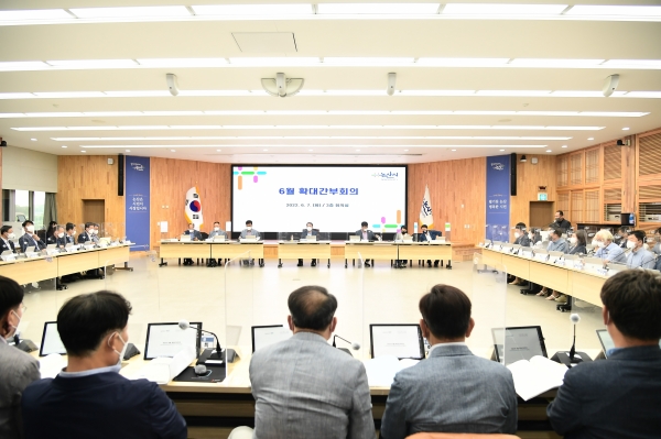 [충청뉴스큐] 논산시는 7일 ‘6월 확대간부회의 및 2022 지방재정 신속집행 보고회’를 개최했다.