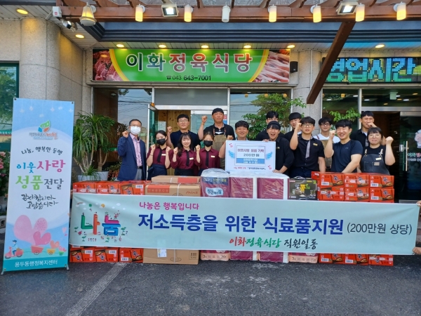 [충청뉴스큐] 이화정육식당에서는 지난 15일 관내 어려운 이웃들에게 전달해 달라며 선풍기, 라면 등 200만원 상당의 물품과 결식우려가정 외식상품권 100만원을 기탁했다.